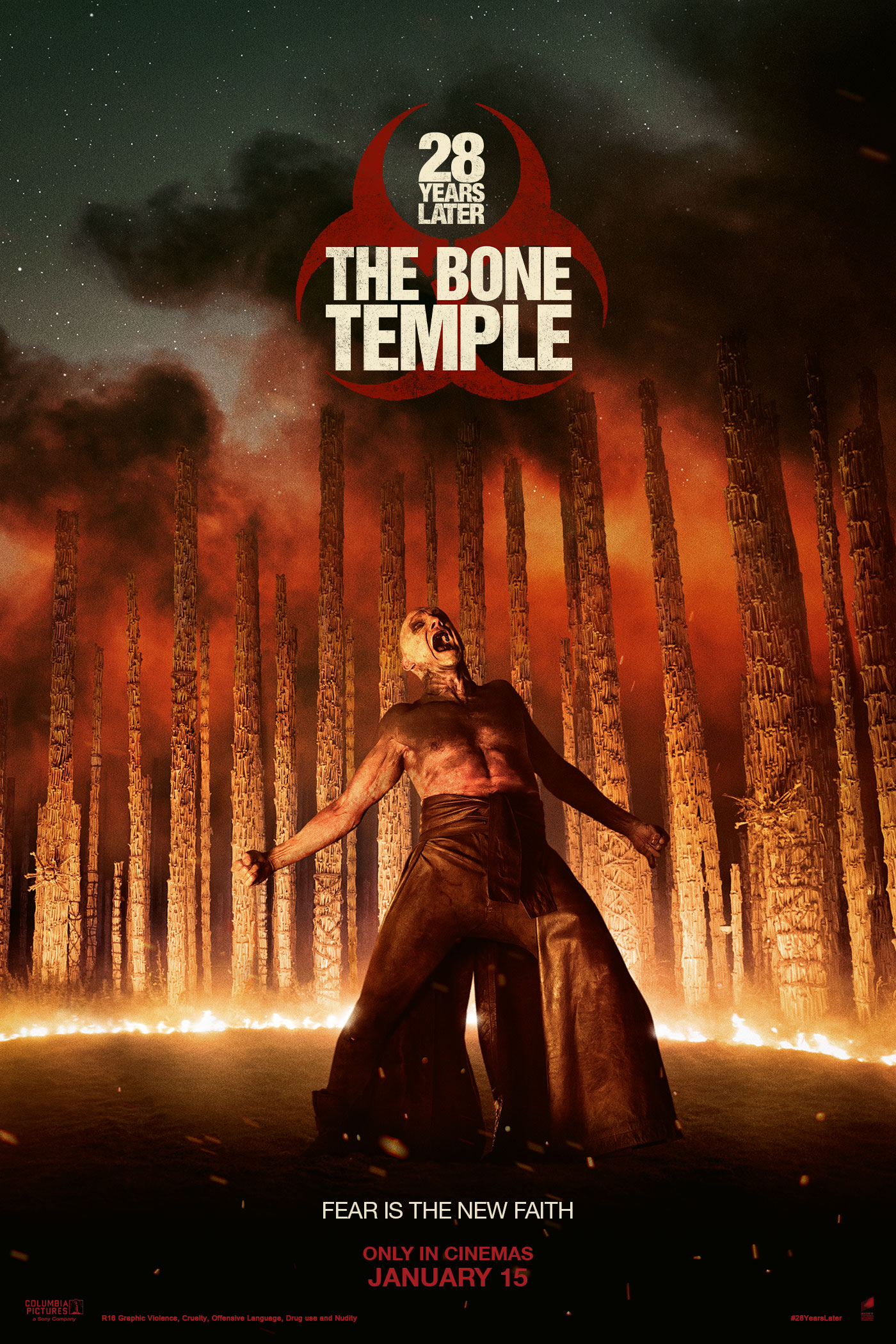 Expanding upon the world created by Danny Boyle and Alex Garland in 28 Years Later - but turning that world on its head - Nia DaCosta directs 28 Years Later: The Bone Temple. In a continuation of the epic story, Dr. Kelson (Ralph Fiennes) finds himself in a shocking new relationship - with consequences that could change the world as they know it - and Spike's (Alfie Williams) encounter with Jimmy Crystal (Jack O'Connell) becomes a nightmare he can't escape. In the world of The Bone Temple, the infected are no longer the greatest threat to survival - the inhumanity of the survivors can be stranger and more terrifying.